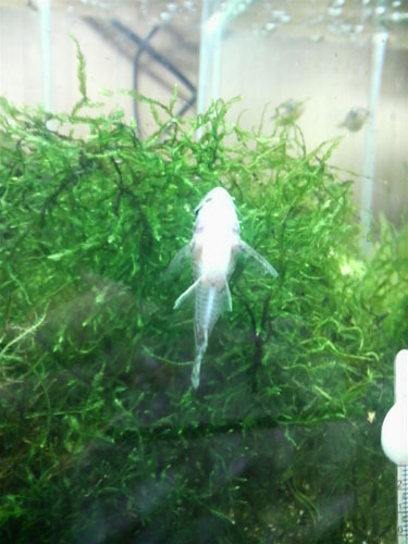 フと水槽を見ると、何だかデカイ白いものが。